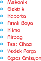 2000 m2 kapalı ve 800 m2 açık alanda hizmet veren servisimiz Acil Yol Yardımı, Oto Kaporta Düzeltme, Komple Oto Boyama, Otomotiv Bakım, Araç Elektronik Bakım, Oto Boyası, Kaporta Tamir, Motor Tamiri, Araba Boyama İşlemleri, Fırınlı Boya, Mekanik Tamir işleri başta olmak üzere tüm servis işleri ile yedek parça satışı konularında hizmet vermektedir.